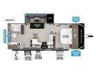 Escape to adventure with this fantastic travel trailer! The private bedroom features a plush 60" x 80" queen bed, spacious wardrobe, and TV prep for entertainment. The kitchen area is fitted with a pull-out pantry, 10 cu. refrigerator, microwave, and three-burner cooktop for gourmet meal prep. Enjoy extra counter space with the flip-up countertop extension, ideal for easy and comfortable cooking. Gather with family and friends at the theater dinette, featuring an LED HDTV for movie nights and game days after that, you can take a relaxing bath in the full rear bathroom, with ample storage. Stay organized on the go with pass-thru storage, 20” x 20” baggage door/trash can storage, and a spacious interior. Enjoy outdoor living under the shade of the 18’ awning, perfect for weekend getaways, or outdoor activities for the adventure-seekers.