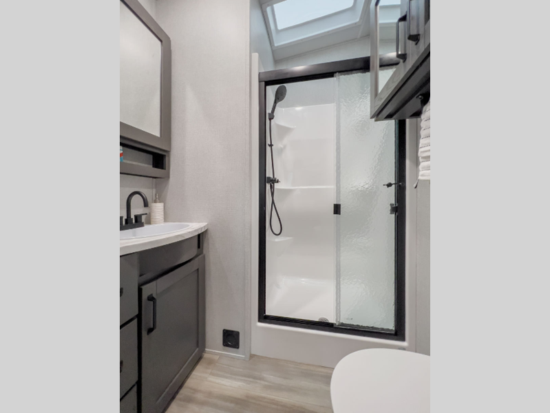 Reflection is built with the Artic 4-Season Protection package which provides a 35K BTU high capacity furnace, double insulated roof and front cap, a heated and underbelly with circulating heat, and 12V heat pads on the holding tanks to mention a few features that allow you to travel during any climate. The interior offers residential cabinetry, a deep seated stainless steel kitchen sink in the gourmet kitchen, a spacious shower with a glass door, and ductless flooring in the living area to name a few comforts.