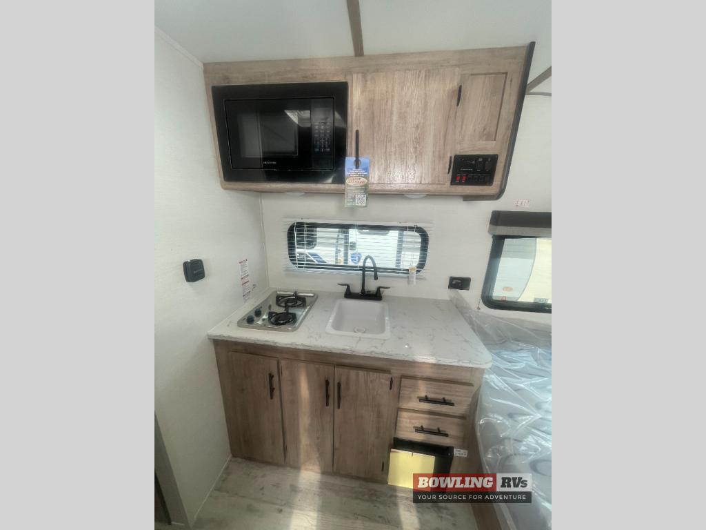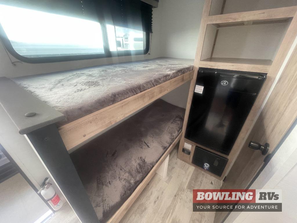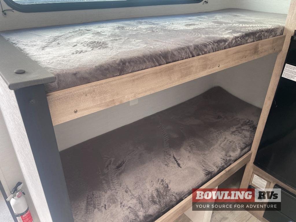 This travel trailer is ideal for families seeking adventure and relaxation! The incredible microwave and refrigerator simplify meal planning, while the two-burner cooktop lets you cook up delicious meals for the whole family. The bunk beds are a hit with kids, providing a fun and cozy sleeping space, while the comfortable bed is perfect for parents to unwind. Ample storage space is available, including flip-up storage and overhead shelves, keeping your belongings organized and within reach.