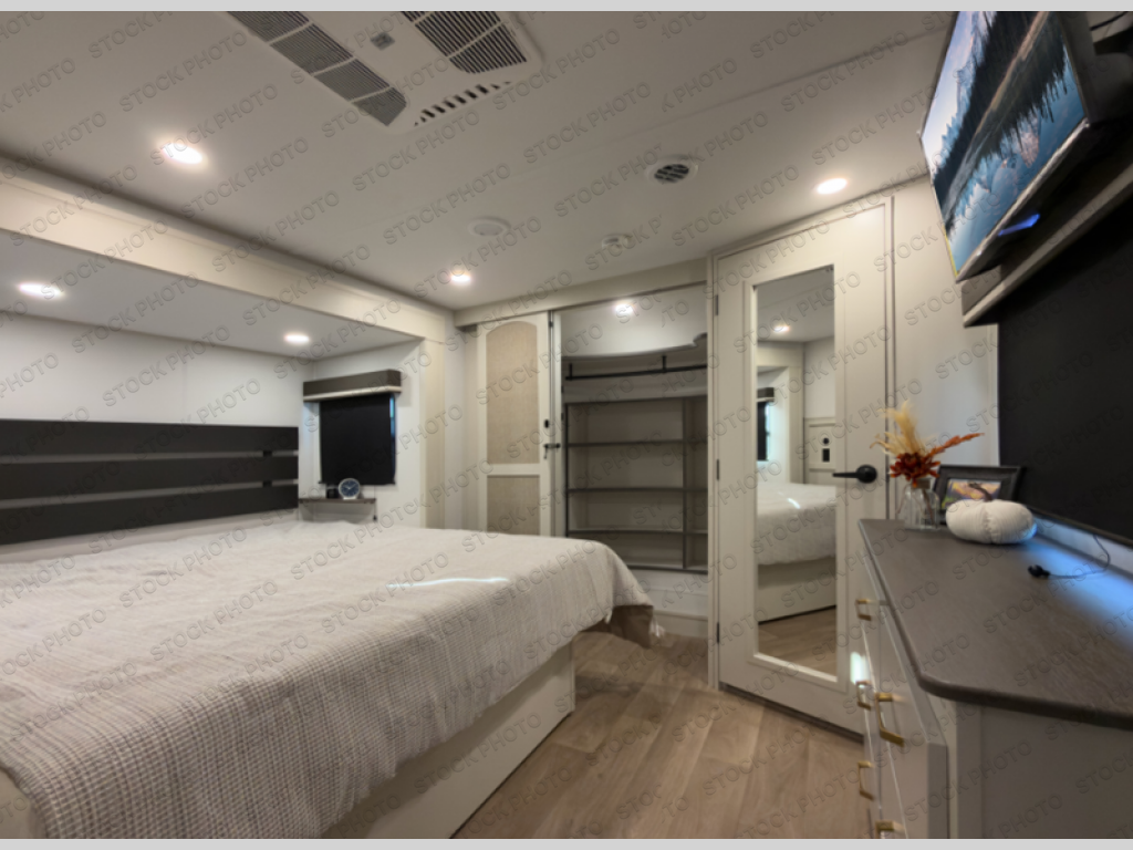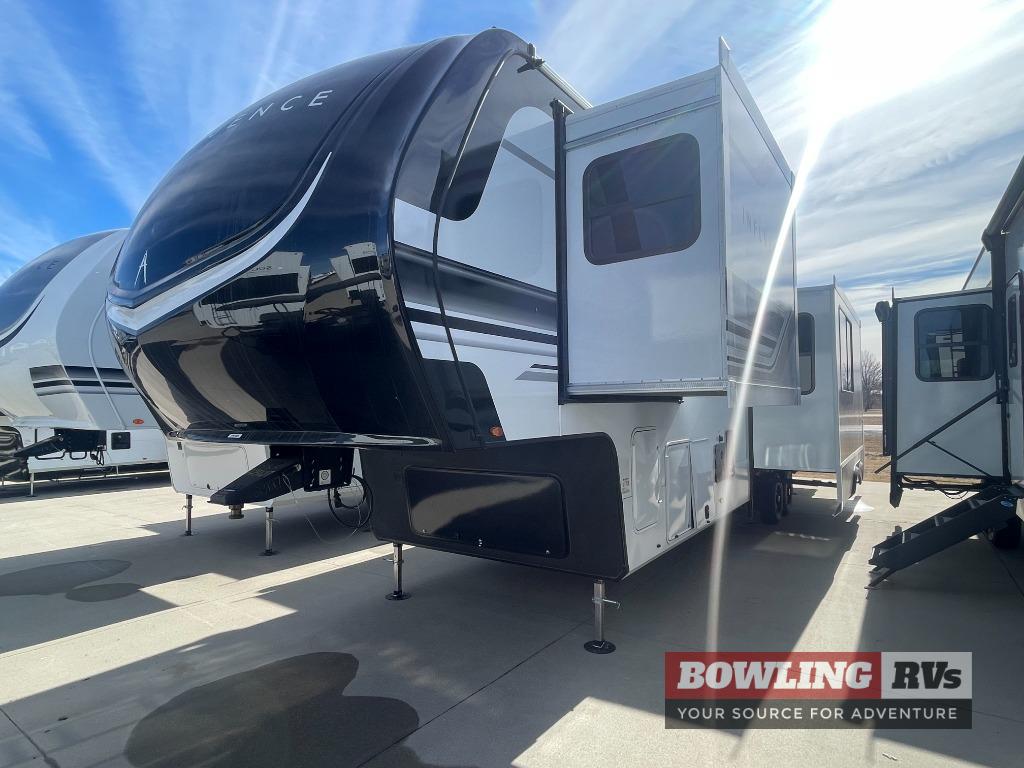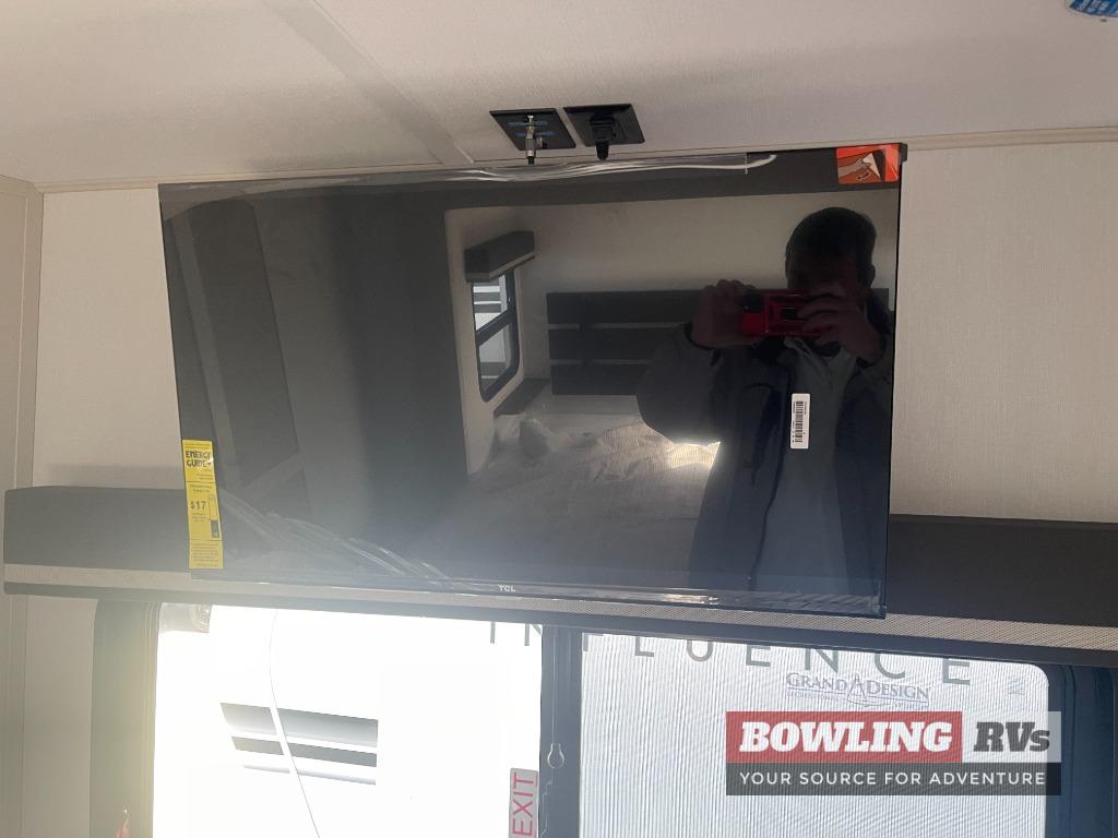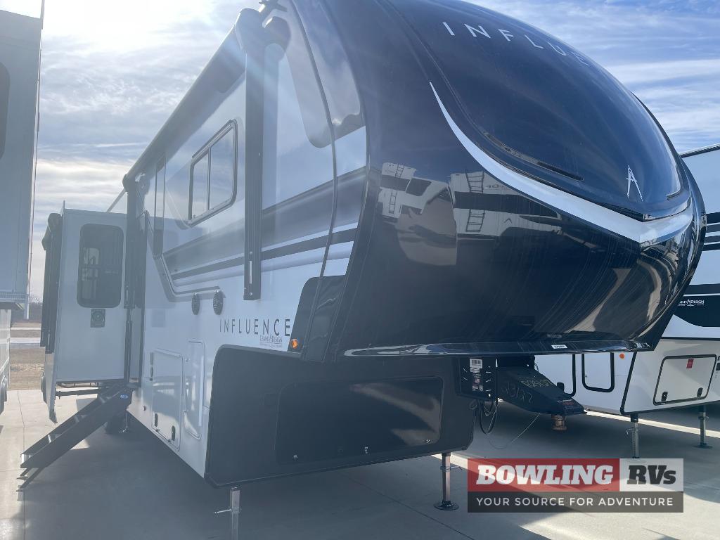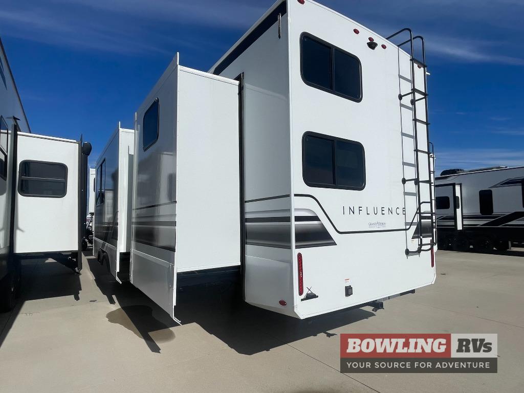 Any Grand Design Influence fifth wheel features five-sided aluminum cage construction with a walk-on roof and a fully enclosed underbelly with heated tanks and storage for all weather camping. For peace of mind, the MORryde CRE3000 Suspension system will provide safe and smooth towing, and the 101" widebody construction offers all the room you need and that is before multiple slides are fully engaged. You will appreciate the Keyed-Alike locks, slam-latch baggage doors with magnetic door catches, exterior security light, and SolidStep entry steps. On the inside, Congoleum flooring, premium roller shades for privacy, a hallway handrail for safety, and nightstands with USB ports to keep all of your electronics fully charged. You will also love the on demand tankless water heater when showering, plus the added heat and ambiance from an electric fireplace, and so much more!