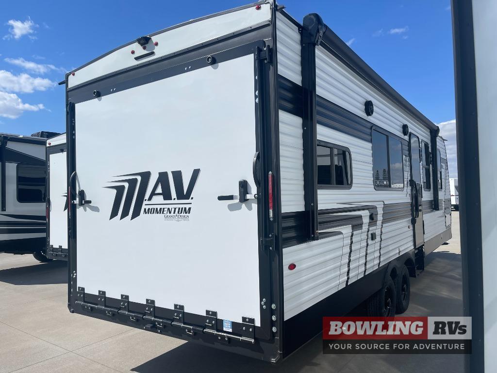 The Momentum MAV toy hauler travel trailers by Grand Design are designed to provide exactly what you need. The spacious garage provides tons of cargo space, with no wheel wells to get in the way. Additional storage includes magnetic storage door catches, and overhead consoles throughout. Conveniences like motion sensor lights and USB outlets will make your life easier, and you will be comfortable in all seasons with the 30K BTU furnace plus 15K BTU ducted air conditioning. The standard Solar Package comes with a 180W solar panel, a 40 Amp charge controller with Bluetooth, and a 12V refrigerator so you can go off-grid when the adventure calls for it.