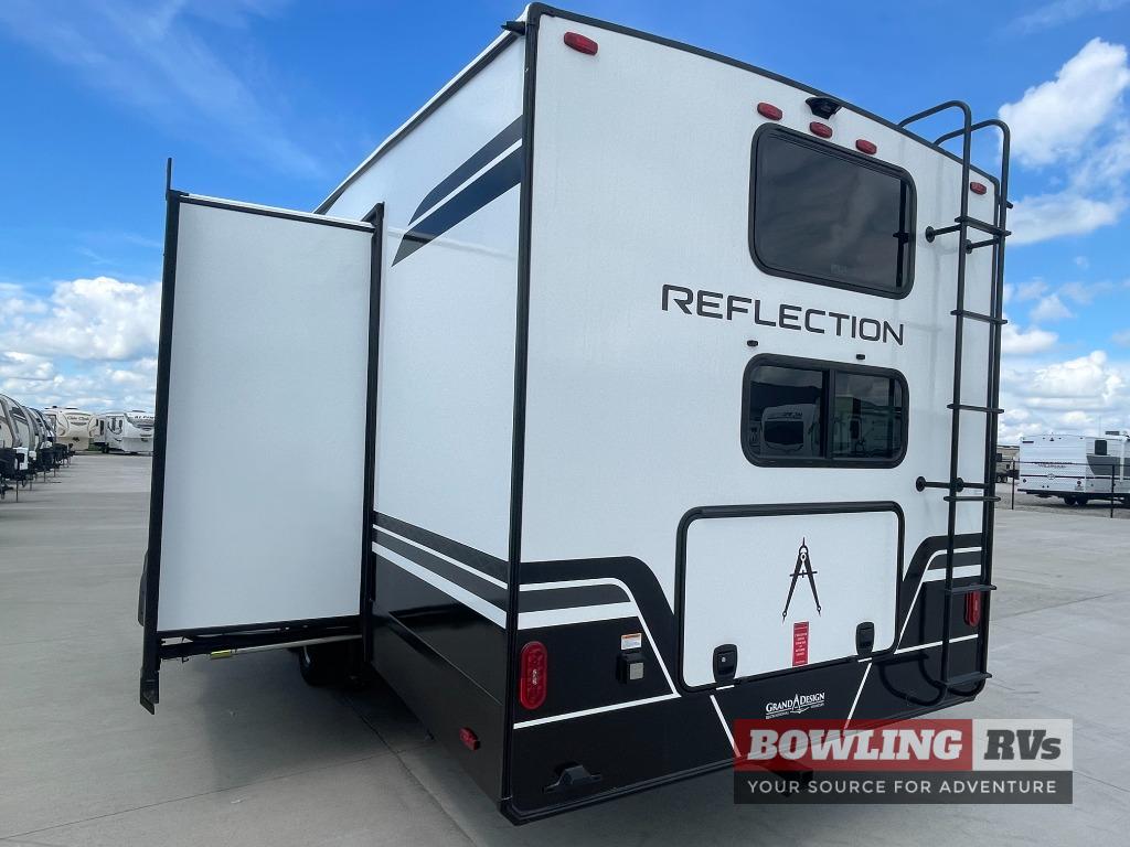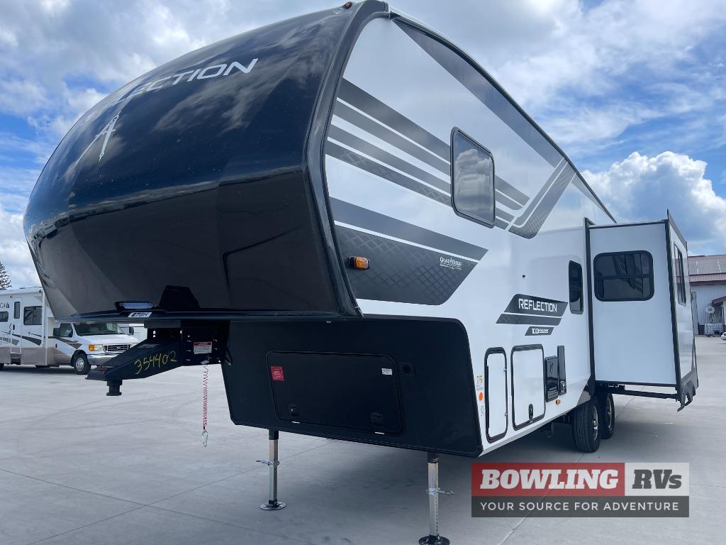 Each Reflection 100 Series fifth wheel by Grand Design is affordable and packed with luxury for unforgettable camping memories! The MorRyde CRE3000 suspension system and Goodyear Endurance tires will provide smooth towing from home to campground. And the solar package with a 180W solar panel, 60 Amp charge controller and 12V refrigerator will allow you to camp for longer periods of time and in more locations! A heated and enclosed underbelly with circulating heat is included in the Arctic 4-Seasons Protection Package, along with a double insulated roof and front cap, and thermofoil insulation under the holding tanks so you can camp all year long if you choose. You will appreciate having an on-demand water heater for hot showers after exploring, and the universal all-in-one docking station will let you monitor your RVs tanks levels and functions with ease. These models also include many luxurious interior features, such as premium Congoleum flooring, pleated shades, residential cabinetry, and matte black fixtures and hardware. Don't let the Reflection 100 Series fifth wheels pass you by!