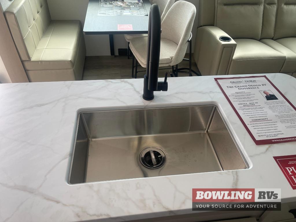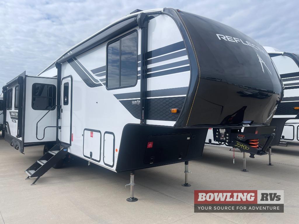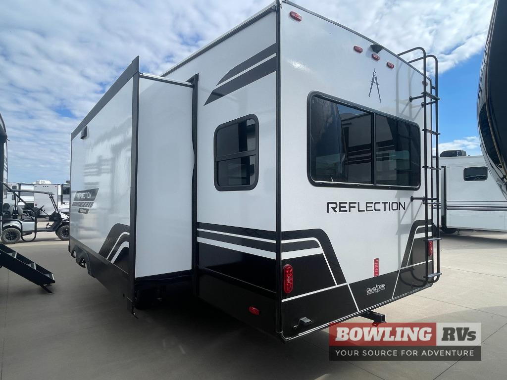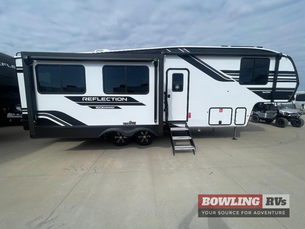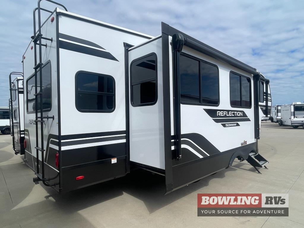 With any Reflection 150 Series fifth wheel by Grand Design, there is more available payload capacity and a broader range of half-ton trucks capable of towing this fifth wheel, and no slider hitch is needed thanks to the 90-degree turning radius which makes them short bed friendly and easier to tow. The mandatory Ultimate Power package provides a "One-Touch" automatic leveling system and a detachable power cord with LED light for easy setup, plus motion sensor pass-through lighting and entry lighting, and the Tire Linc TPMS will help you stay safe on the road. The interior offers residential luxury from the cabinetry and premium Congoleum flooring, to the booth dinette and residential-style window treatment. Make your refined decision today!
