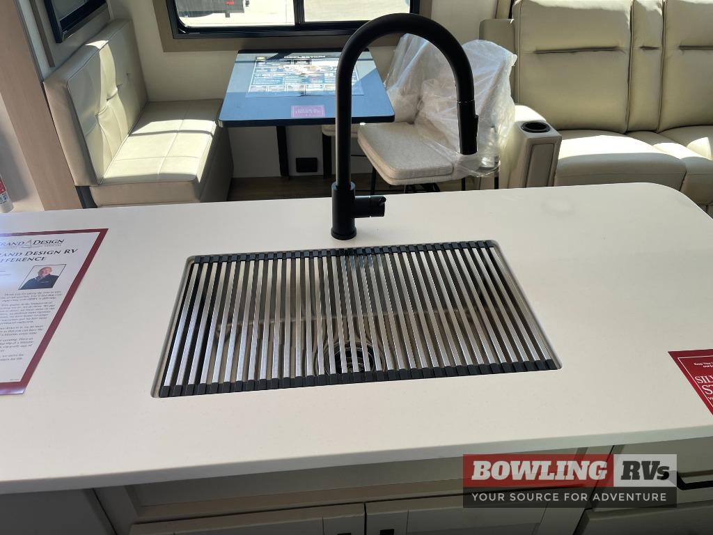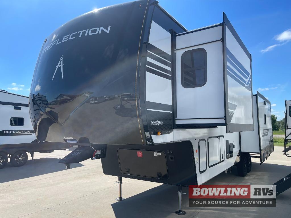 With any Reflection fifth wheel by Grand Design, you will have a solar panel for off-grid camping and a 60-amp charge controller and inverter prep, a Universal All-In-One docking station, unobstructed pass-through storage, and Goodyear Endurance tires. Each is constructed of gel coat exterior sidewalls, residential 5" truss rafters, walk-on roof decking, a fiberglass and radiant foil roof and front cap insulation plus laminated aluminum framed side walls, roof and end walls in slide rooms. Head inside to enjoy residential hardwood cabinet doors, premium Congoleum flooring, a spacious shower with a glass door, and many more comforts!