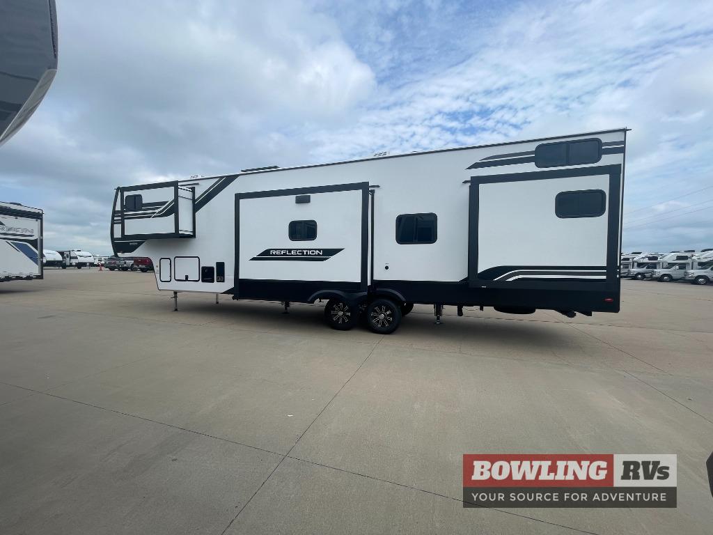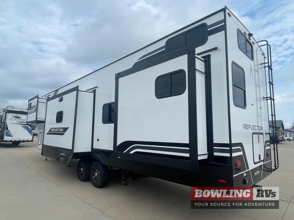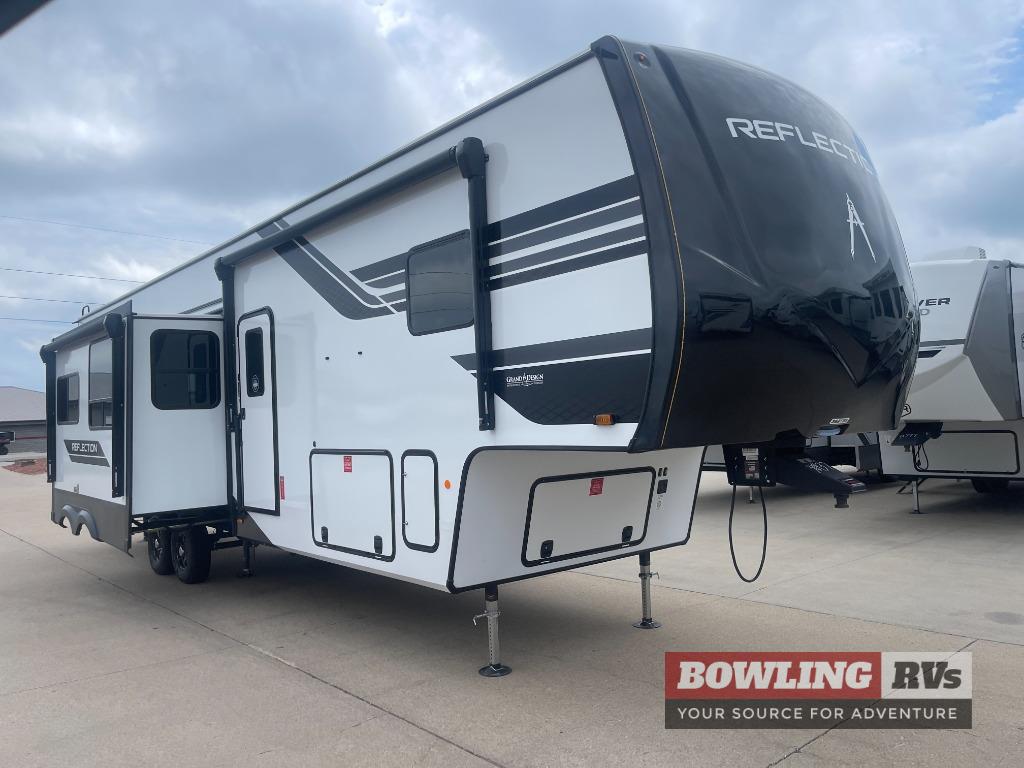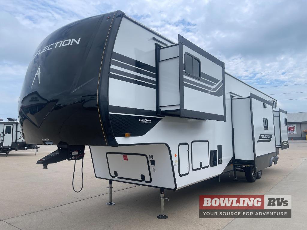 With any Reflection fifth wheel by Grand Design, you will have a solar panel for off-grid camping and a 60 amp charge controller and inverter prep, a Universal All-In-One docking station, unobstructed pass-through storage, and Goodyear Endurance tires. Each is constructed of gel coat exterior sidewalls, residential 5" truss rafters, walk-on roof decking, a fiberglass and radiant foil roof and front cap insulation plus laminated aluminum framed side walls, roof and end walls in slide rooms. Head inside to enjoy residential hardwood cabinet doors, premium Congoleum flooring, a spacious shower with a glass door, and many more comforts!