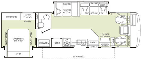 Double Slide, Queen Bed w/Nightstands, Wardrobe, Vanity/TV Overhead, Shower, Refrigerator, 3 Burner Range, Microwave, Double Kitchen Sink, Recliner, End Table, Sofa Bed w/Seat Belts & Booth Dinette Slideout, Overhead Cabinet Space Above Cab Area, Engine & Chassis Choice and More.