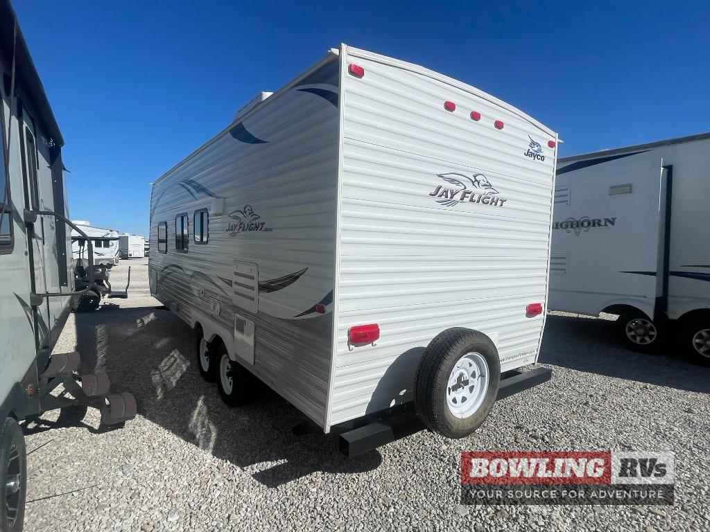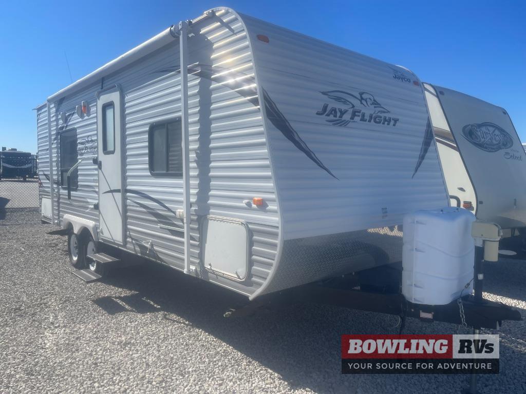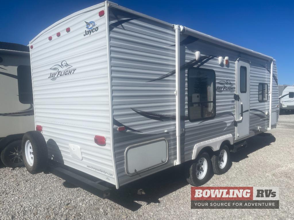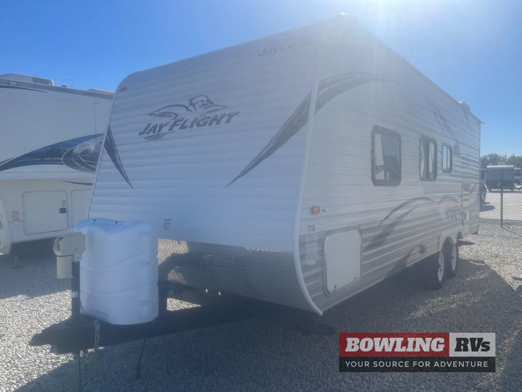 Jay Flight Travel Trailer w/Rear Bath w/Ward., Lav., Medicine Cabinet, Tub/Shower, Refrigerator, Microwave, 3 Burner Range, Double Kitchen Sink, Booth Dinette w/Overhead Cab., J-Steel Sofa, Front Queen Bed, Double Wardrobes, Overhead Cabinets Throughout, Pass Thru Storage, 15' Awning and Much More!