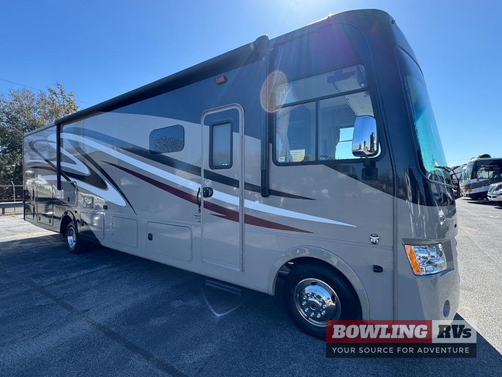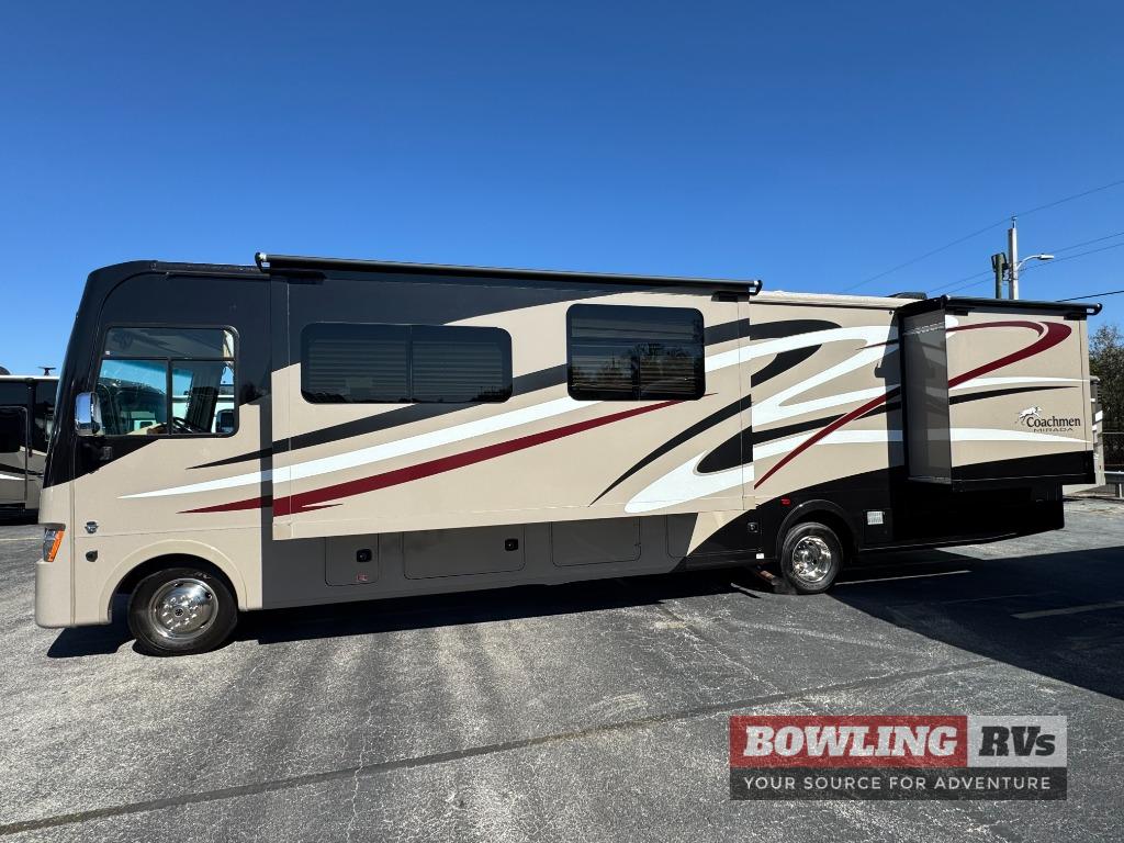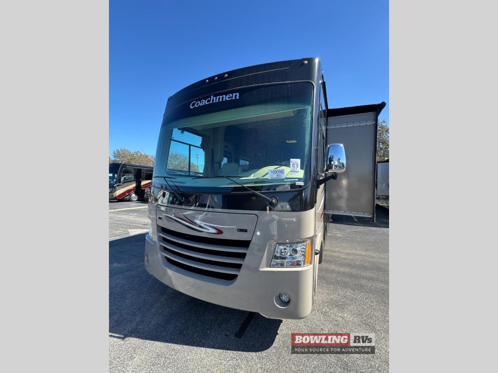This Coachmen Mirada class A gas motor home 35KB features double slides, a king size bed, and all the amenities you need to enjoy any road trip!