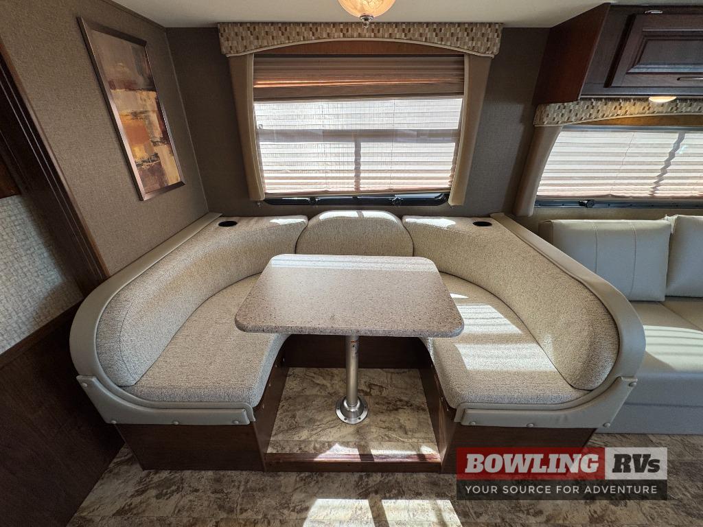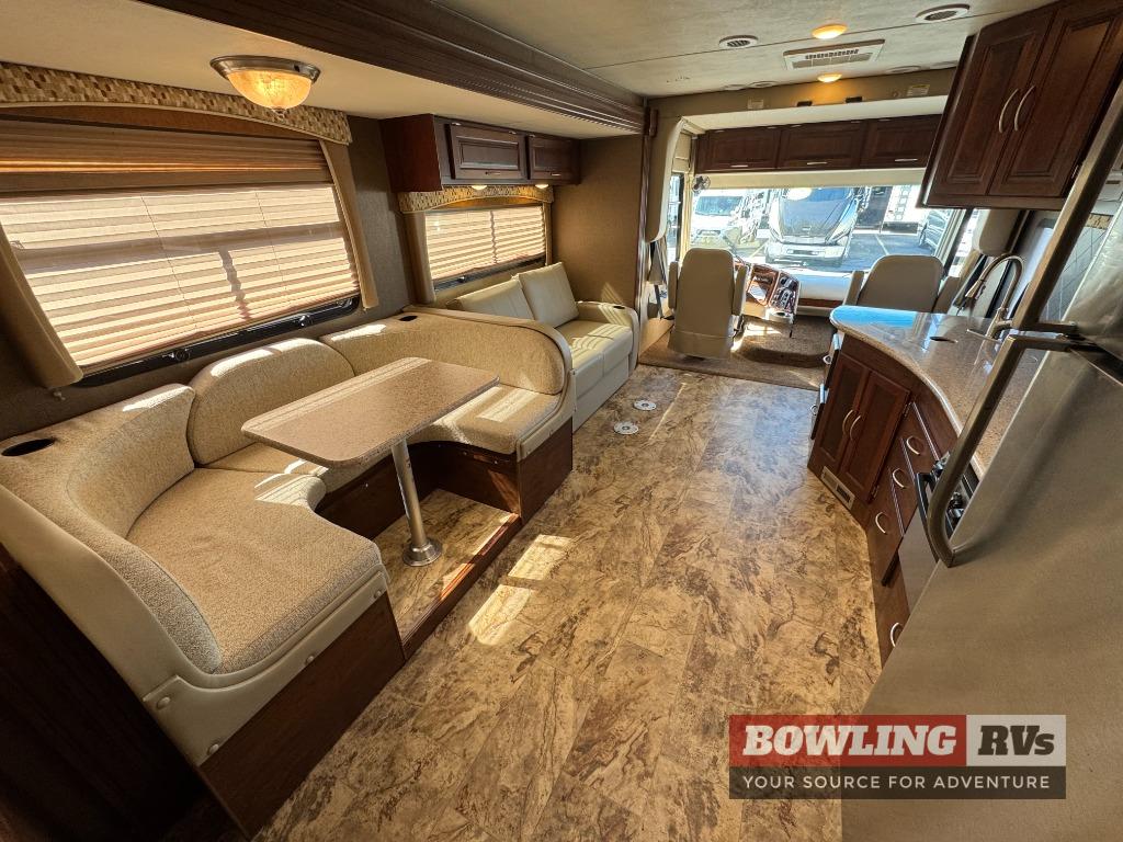 Step inside and notice the large slide out hide-a-bed sofa with a table and u-shaped dinette opposite the entry door. There is also a 39" TV nearby to enjoy.