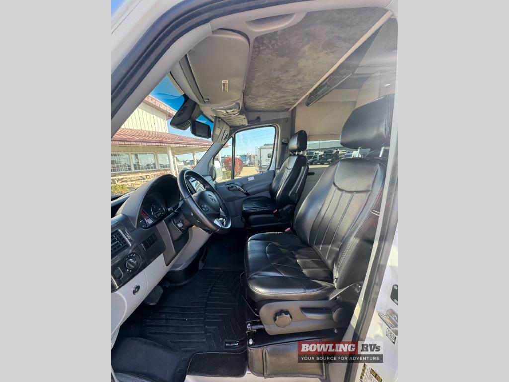 Step inside and find a convenient conversation area with the driver and passenger seats swiveled around and two additional lounge chairs, all with seat belts for safety while traveling. There is a removable table where you can enjoy your meal, or morning coffee.