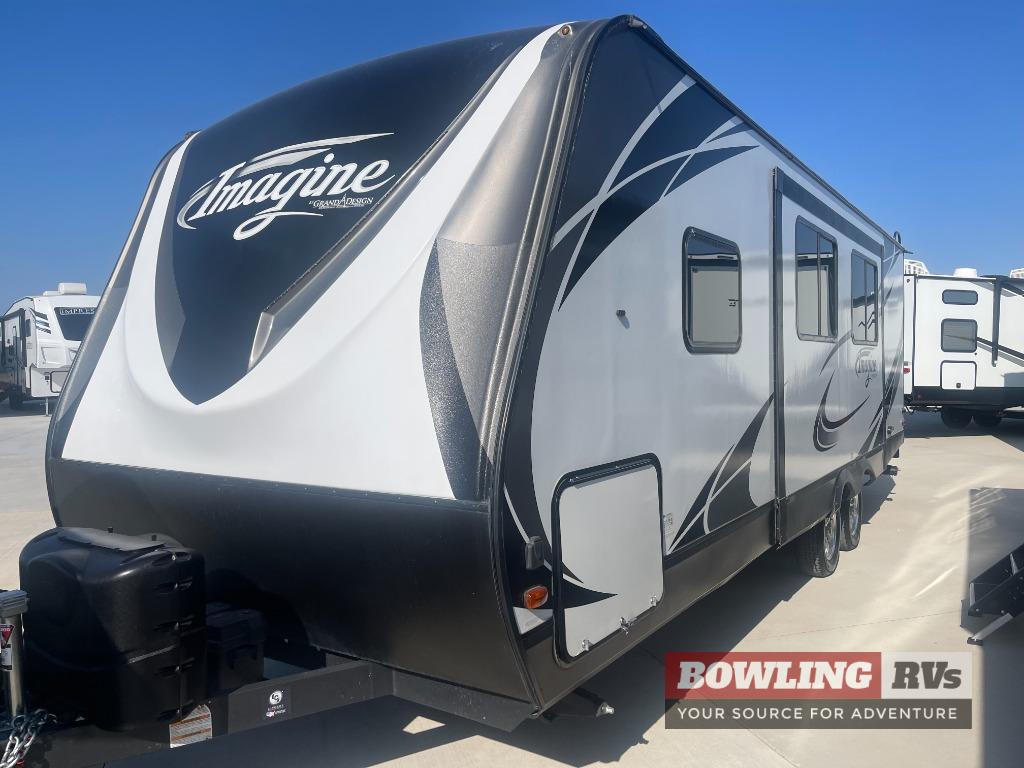 With any Imagine by Grand Design you will get a lightweight travel trailer that is towable behind most medium duty trucks and SUVs. The three year limited structure warranty will provide security while the 47 cu. ft. exclusive drop frame pass through storage allows you to pack all your favorite outdoor gear. The oversized tank capacities will allow you to stay a little longer when full hook-ups aren't a choice. Some of the inside features include upgraded residential furniture, large panoramic windows, and a Bluetooth stereo. It's time to stop compromising and start living your dreams today!