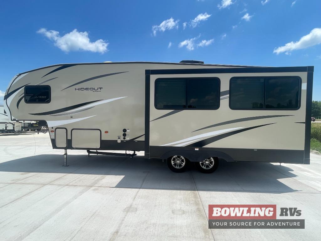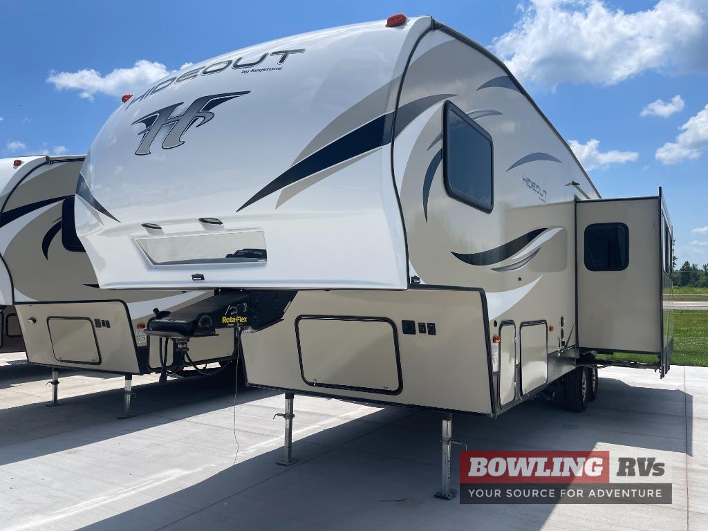 For any trip whether near or far you will want a Hideout fifth wheel by Keystone RV. These models are lightweight which makes them easy to hook-up and tow. Just load up your belongings and head out for a weekend away in your own Hideout retreat. A few key features inside each model include pleated shades in the living area, a high-rise kitchen faucet, plus full strutted storage under the master bed. The exterior has a gel coated Maxturn fiberglass front cap, black radius window frames, hurricane straps reinforced structure, and an exterior shower. What are you waiting for? Come enjoy your own private hideout with a Keystone Hideout travel trailer!
