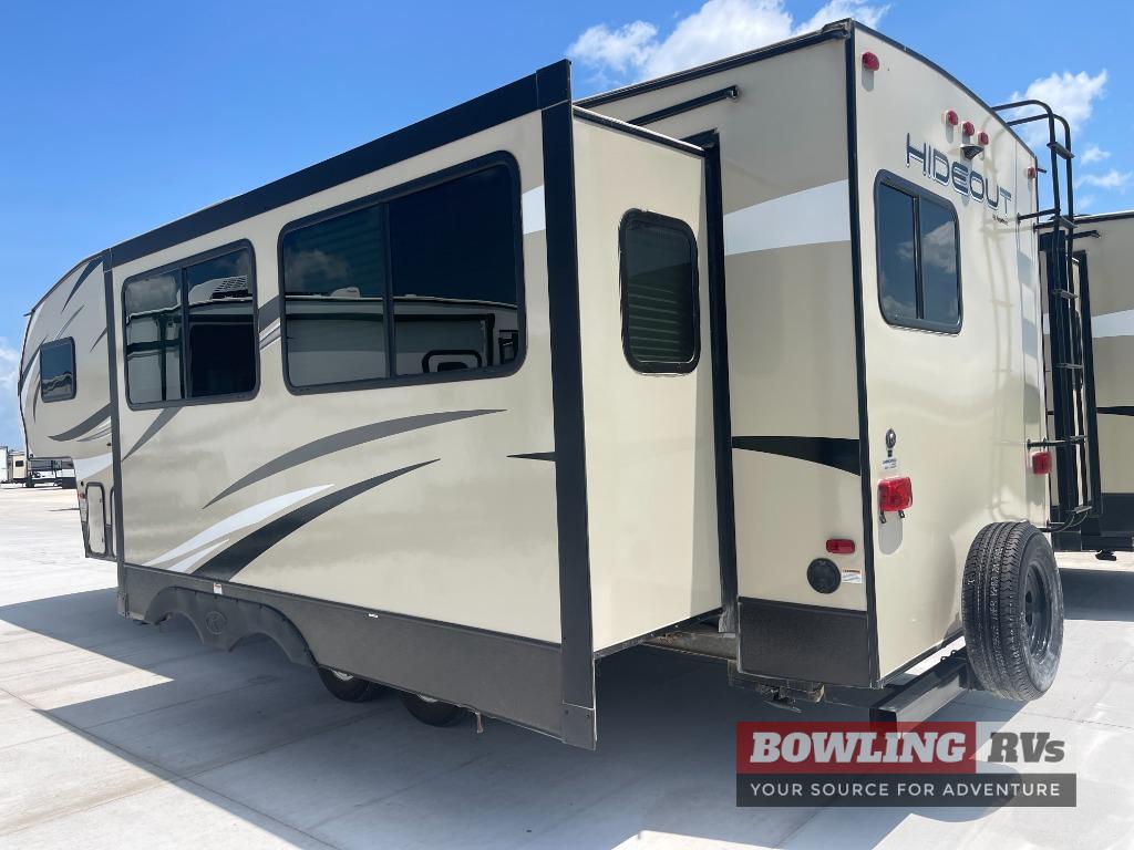When you choose to camp with this Hideout 262RES fifth wheel you are choosing a quality unit for your family. Before you head inside come check out the exterior kitchen with a pull-out stove and a refrigerator. When you want to visit with your family and friends inside it is easy to do so at the u-shaped dinette and tri-fold sofa. Remember both the sofa and dinette easily convert into additional sleeping space! With the 50" HDTV you can also watch your favorite show or movie while you are away from home.