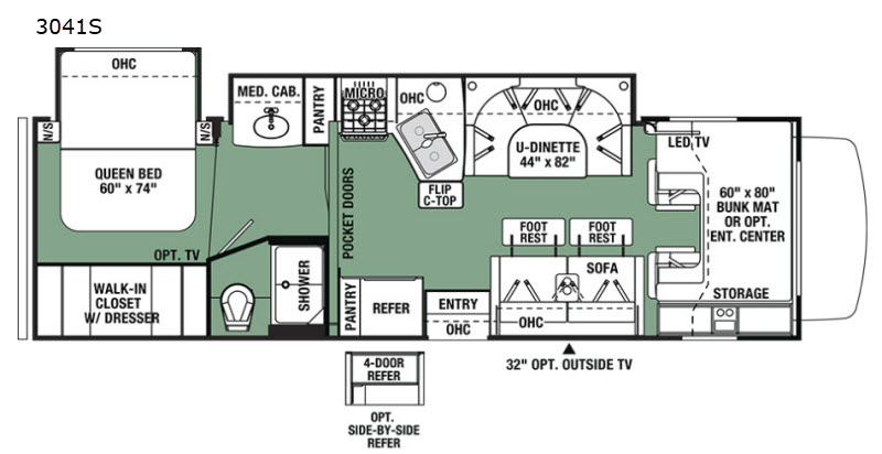 This is the perfect coach for you and your significant other or a group of friends! There is a private room in the rear, the pocket door gives this effect. Through the door, there is a walk through bath, a slide out queen bed and a walk-in closet with a dresser!! The cook of the family will love this Forester kitchen for cooking up delicious family recipes with all of the stainless steel appliances. There is also a U-shaped dinette and a sofa for relaxing, playing games, or eating meals together. Come take a look at this model today!