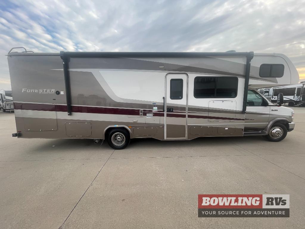 This Ford chassis Forester Classic 3051S features a full wall slide out along the driver's side which gives this unit a bit of extra walking around space. You have a 42" x 68" booth dinette and a sofa opposite one another that both have seatbelts to keep your passengers safe while you travel, and both can fold down into sleeping spaces at night. There is a split bathroom that allows you to use both sides at one time. The private rear bedroom has plenty of storage including a shirt closet so you can bring whatever you would like to, and there is even a TV so you can watch a movie before you go to sleep.