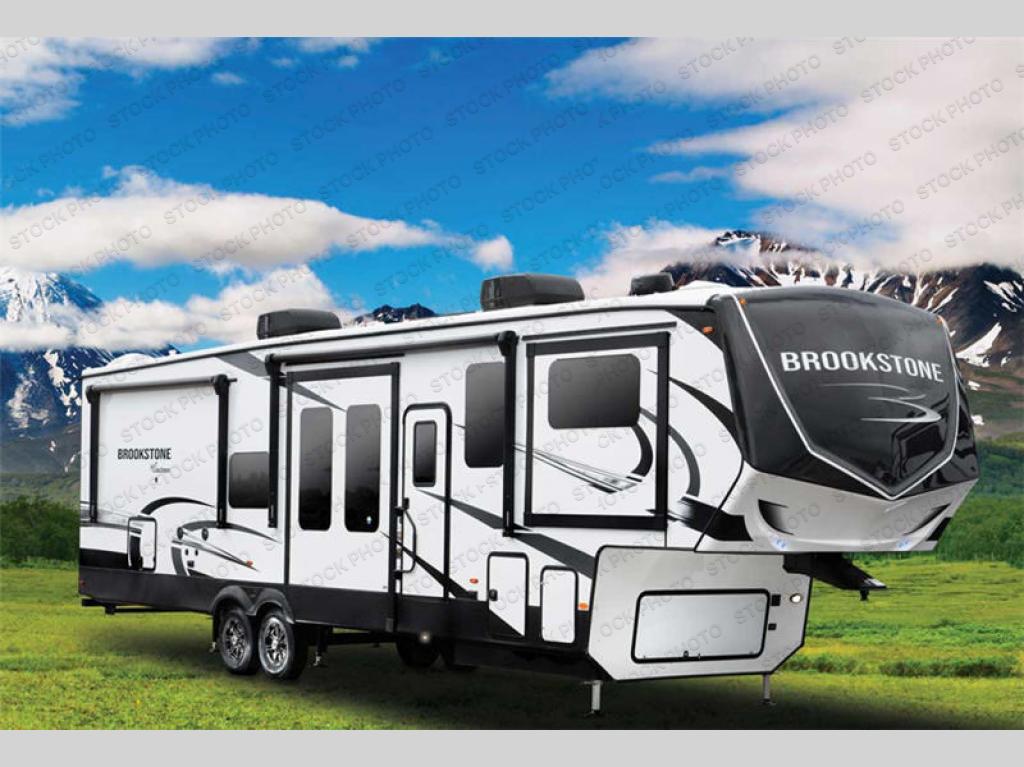 The Brookstone fifth wheels by Coachmen are coming to you with wide-body comfort, home-like amenities, and unique designs for a truly luxurious RV. The 4 Season Protection Package includes double batten insulated roof with radiant barrier insulation, Weather Shield+, a 40,000 BTU high capacity furnace, and more that will help you extend your camping season or go full-time. The frameless automotive-style windows feature 80% privacy tint safety glass, and the vacuum bonded and aluminum framed sidewalls with rot proof Azdel will provide durability. Head inside to find solid hardwood drawers, granite/marble style solid surface countertops in the kitchen, a residential bed with a pillow top mattress and full storage underneath, and the list of comforts goes on! The Brookstone also includes 6-point electric auto-leveling, marine-grade exterior speakers with an LED light, four Solid Step entry steps, and many more exterior conveniences!