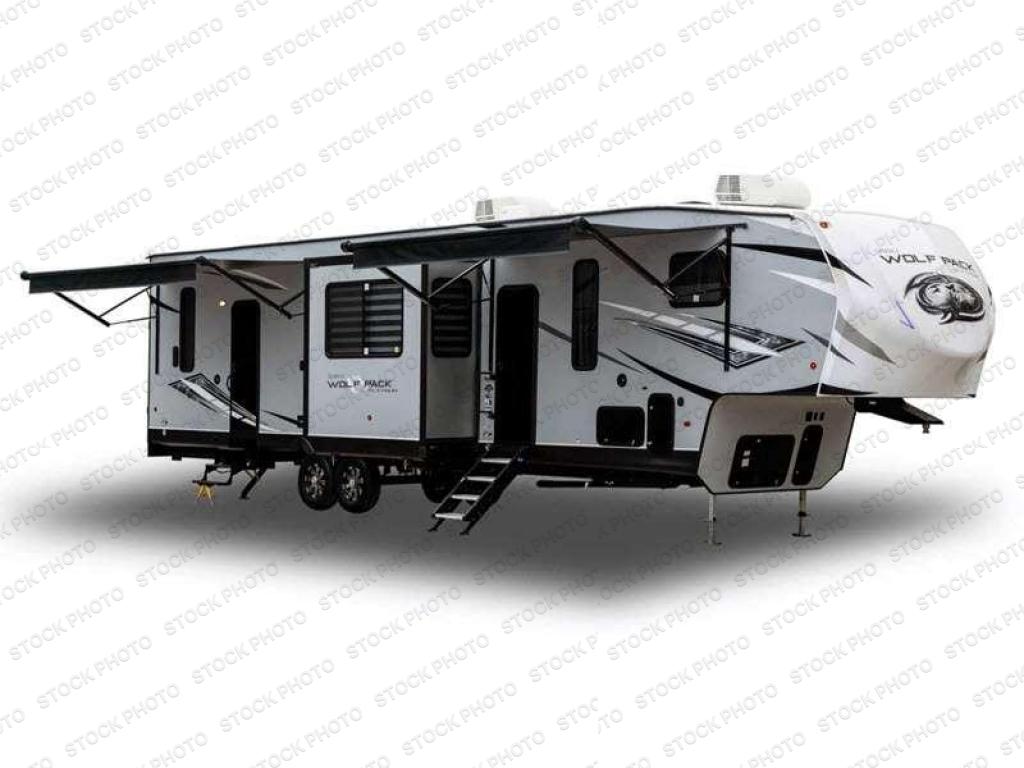 Run with the pack in any one of these Forest River Cherokee Wolf Pack toy haulers! They are affordable and versatile with a 102" widebody design to pack in all of the necessary features for a great adventure with your family and toys. The grey high gloss gel exterior will turn heads on the highway and the LED interior/exterior lights will make life easier. An outside shower with hot and cold water helps to keep the mud outside where it belongs. With an external 30 gallon fuel station, you won't have to worry about your toys being low on fuel. The Platinum package adds extra conveniences like a ramp door patio deck railing system, a Happijac bed lift system, and an industrial rubber garage floor on enclosed garage models. Come find the perfect model for you today!
