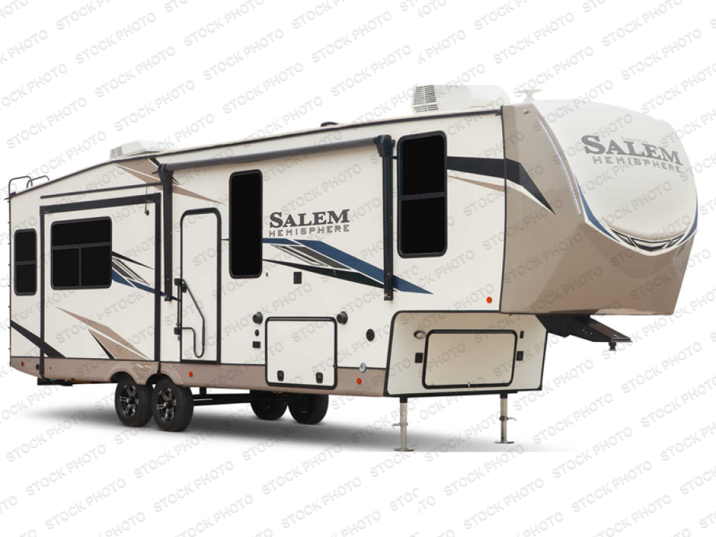 With each Forest River Salem Hemisphere fifth wheel and travel trailer, there are vacuum bonded "Aluma frame" sidewalls and floors, heated and enclosed dump valves and an underbelly, plus an Ivory performance colored exterior fiberglass with Smoked Quartz Metallic accents. A few other features you will love are the 7-way "rain defense" plug holder in the front frame, the extra large pass-through storage, the Hudson Wood agreeable grain cabinetry, and the designer's choice Herringbone Shaw flooring for style and easy clean up!