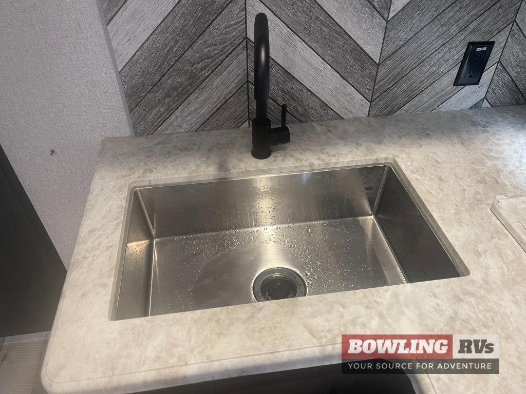 Each Sportsmen SE travel trailer and toy hauler by KZ is constructed with KZ exclusive tough shield exterior metal, one-piece seamless walk-on Tufflex roofing material, and a fully enclosed, insulated, and heated underbelly. You will appreciate the RV Airflow System that optimizes the airflow in your A/C system for a more evenly and quietly-cooled trailer. Some of the exterior conveniences you'll find are the four stabilizer jacks, nitrogen-filled tires, an exterior shower, and a Leash Latch with a bonus beverage opener. You'll feel right at home with residential-grade linoleum, a black residential kitchen faucet, large overhead cabinets, a shower surround, and much more!