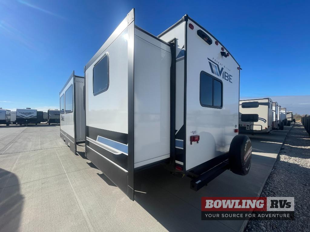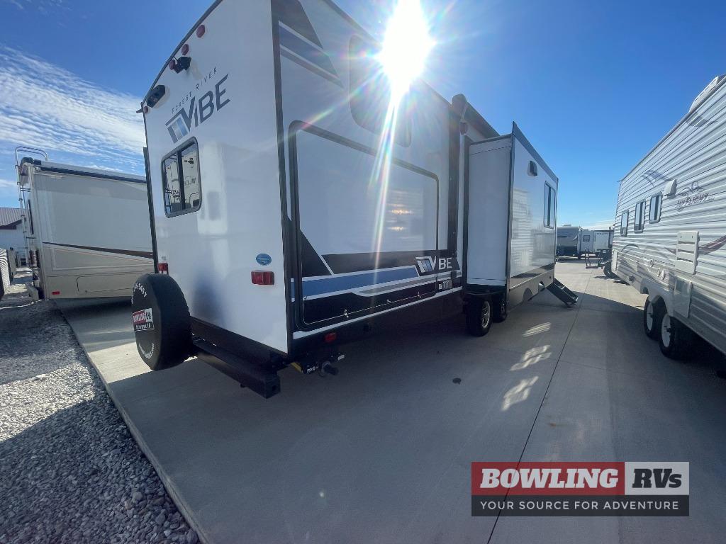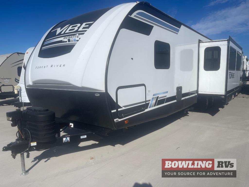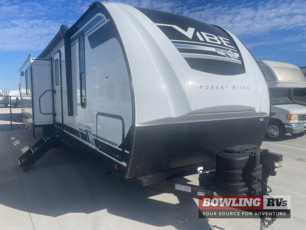 Each Vibe travel trailer by Forest River includes Hyper Lyte construction and a durable laminated "Aluma Frame" for years of use. You will also find an outside shower, a 200-watt roof mounted solar panel, and heated tank pads that will help extend your camping season. The Reserve Package has many at-home features you are sure to enjoy, like the decorative window treatments, solid surface countertops, new black chef's appliance package with an air fryer, and more! These models also include cable and satellite prep and a digital TV antenna with a booster so you can stay connected to the outside world if you choose. Make the easy choice and choose a Vibe travel trailer today!